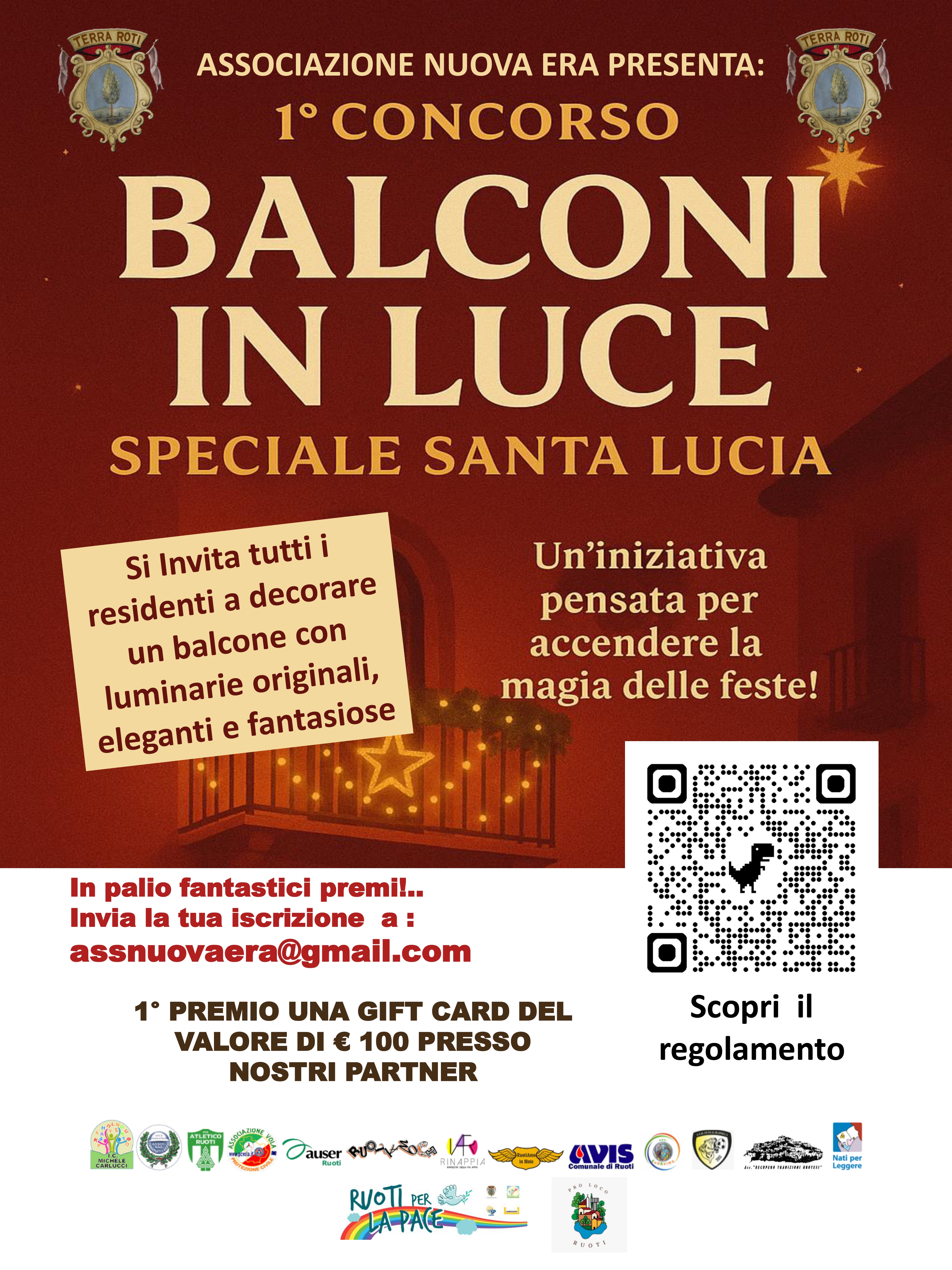 Balconi in Luce è l’iniziativa promossa dall’Associazione Nuova Era con il patrocinio dell’Amministrazione Comunale per celebrare la Festa di Santa Lucia, il 13 dicembre.
