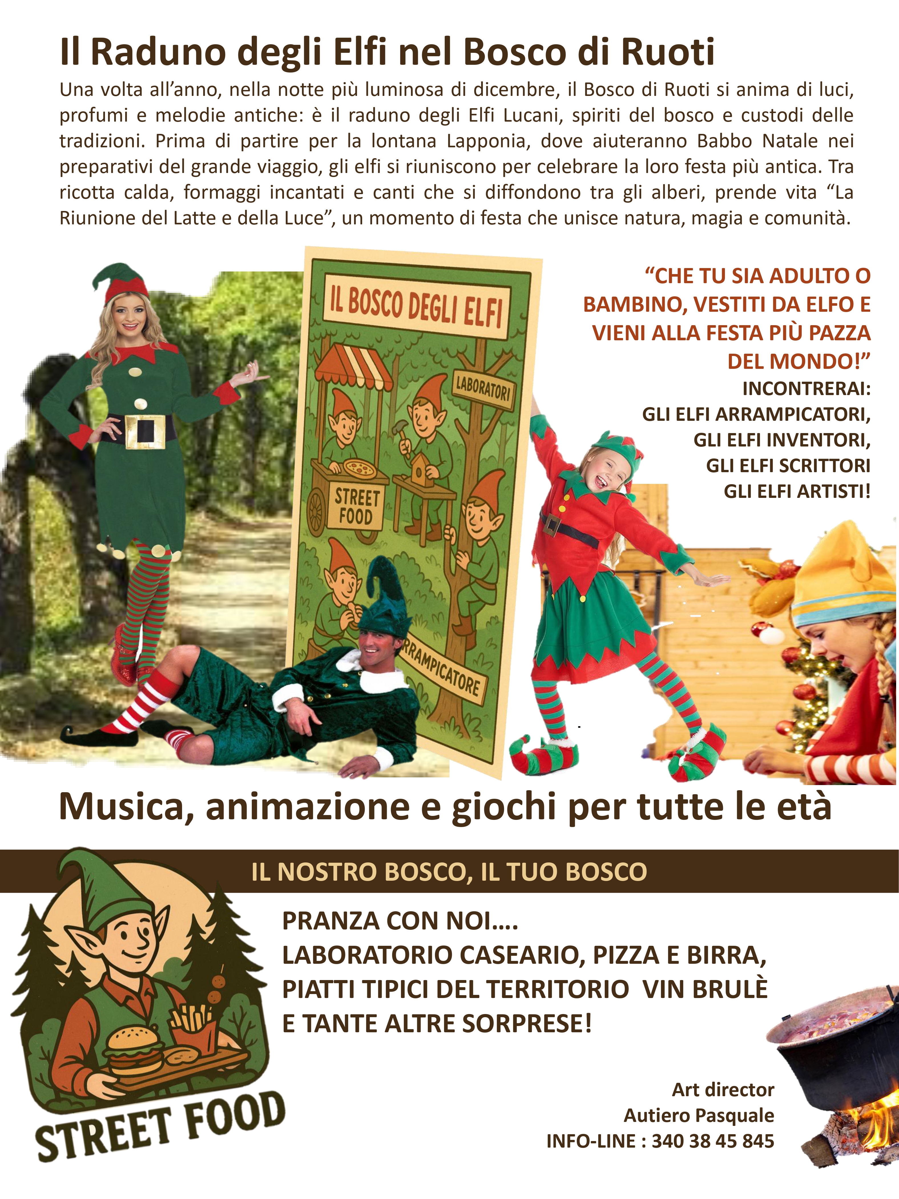 Musica, animazione, laboratori creativi, street food e divertimento per tutte le età. Tra elfi inventori, arrampicatori, artisti e scrittori, adulti e bambini vivranno un’esperienza magica fatta di natura, sapori tipici e sorprese. Vestiti da elfo e immergiti nella festa più pazza e luminosa dell’anno!