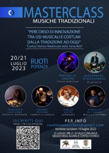 Testo completo title Nel comune di Ruoti, in provincia di Potenza, inizia il “𝐏𝐞𝐫𝐜𝐨𝐫𝐬𝐨 𝐝𝐢 𝐢𝐧𝐧𝐨𝐯𝐚𝐳𝐢𝐨𝐧𝐞 𝐭𝐫𝐚 𝐮𝐬𝐢 𝐦𝐮𝐬𝐢𝐜𝐚𝐥𝐢 𝐞 𝐜𝐨𝐬𝐭𝐮𝐦𝐢 𝐝𝐚𝐥𝐥𝐚 𝐭𝐫𝐚𝐝𝐢𝐳𝐢𝐨𝐧𝐞 𝐚𝐝 𝐨𝐠𝐠𝐢” nell’ambito del “𝐂𝐨𝐫𝐭𝐞𝐨 𝐒𝐭𝐨𝐫𝐢𝐜𝐨 𝐌𝐞𝐝𝐢𝐞𝐯𝐚𝐥𝐞 𝐝𝐞𝐥𝐥𝐚 𝐓𝐞𝐫𝐫𝐚 𝐑𝐨𝐭𝐢”. Non si tratta di un semplice corteo storico, né di una semplice rassegna musicale, ma di un vero e proprio percorso che partirà da quelle che sono le origini del nostro patrimonio culturale che risiede nel medioevo. Per fare ciò si partirà dagli aspetti fondamentali della cultura di ogni popolo: i costumi ma anche la musica. Entrambi questi aspetti della vita sociale delle popolazioni di tutto il mondo hanno subito notevoli mutazioni, quindi, lo scopo del percorso, è proprio quello di studiare e approfondire i percorsi che hanno portato all’evoluzione dei nostri giorni. Ma anche e soprattutto capire come ancora ci si può evolvere. L’iniziativa, promossa dal comune di Ruoti e dall’associazione Etnopiano con il patrocinio del patrimonio intangibile della Regione Basilicata e la direzione artistica di Marcello De Carolis, si svilupperà in due fasi: una prima di “sensibilizzazione” della popolazione locale con una serie di concerti e di presentazioni degli abiti del corteo storico medievale della Terra Roti; una seconda fase con una masterclass degli strumenti della tradizione del sud Italia, divenuti oggetto di studio presso i conservatori di musica, e del corteo storico medievale della Terra Roti. Il primo appuntamento è domenica 7 maggio 2023 alle ore 18.00 presso il Museo Contadino Taverna Foj a Ruoti. Ci sarà la presentazione di un abito del corteo storico medievale della Terra Roti a cura di Luciana Micucci, attrice e scrittrice dell’associazione il Centiforme che ha scritto una pièce teatrale originale per l’evento. A seguire ci sarà il concerto del duo Cordaminazioni composto dai musicisti Marcello De Carolis e Luca Fabrizio. Il duo, con alle spalle varie incisioni ed una grande attività concertistica, traccerà attraverso le note un legame tra gli strumenti e le musiche del sud Italia con quelli del sud America. Nel concerto suoneranno i principali strumenti a corda di queste due culture: chitarra, mandolino, mandola, chitarra battente, quattro, charango e cavaquinho. Il prossimo appuntamento è sabato 20 maggio 2023 alle ore 18.00 presso la Chiesa Sant’Antonio di Padova Serra di Pepe a Ruoti. Oltre alla presentazione di un altro abito del corteo storico medievale della Terra Roti di Luciana Micucci su una nuova pièce teatrale, ci sarà il concerto di Francesco Loccisano (chitarra battente), Andrea Piccioni (tamburi a cornice) e Marcello De Carolis (chitarra battente), tra i maggiori esponenti di questi strumenti della tradizione. L’8 giugno alle ore 18 presso la villa comunale di Ruoti, la musica di Raffaello Simeoni (voce, cornamusa, liuti e flauti popolari), di Marco Iamele (zampogna, ciaramella e flauti popolari) e di Marcello De Carolis (chitarra battente) incontrerà i giovani studenti della scuola media ad indirizzo musicale di Ruoti. Dopo il saggio di fine anno degli studenti che li vedrà anche dialogare con gli artisti in una conduction, ci sarà il concerto del trio di Raffaello Simeoni. Il 19 luglio alle ore 21.30 presso la villa comunale di Ruoti ci sarà l’ultimo spettacolo della prima fase: la presentazione dell’abito tipico Ruotese e il concerto per organetto preparato ed elettronica di Alessandro D’Alessandro, tra i maggiori esponenti di questo strumento. Dal 20 al 21 Luglio ci sarà la masterclass degli strumenti della tradizione del sud Italia tenuta da docenti di fama internazionale. Ci saranno i corsi di Canto popolare con Raffaello Simeoni, organetto con Alessandro D’Alessandro, chitarra battente con Francesco Loccisano, Tamburi a cornice con Andrea Piccioni, Zampogna, ciaramella e flauti popolari con Danilo Gatto, e di Musica d’insieme con Marcello De Carolis. L’iscrizione alla masterclass è aperta a tutti (sia allievi effettivi che uditori) ed è gratuita. Per iscriversi basta cliccare sul link https://bit.ly/3AGaiNy o scansione il QR Code presente sulle locandine e compilare il modulo d’iscrizione entro il 10 Luglio 2023. Per gli studenti è possibile prenotare anche l’alloggio per poter pernottare a Ruoti. La masterclass, che si terrà nel bosco di Ruoti, sarà anche l’occasione per conoscere l’immenso patrimonio naturalistico del comune Lucano e scoprire Ruoti Graphic Novel, un originale percorso di arte pubblica, un romanzo inedito che prende corpo nelle grandi immagini collocate sui muri delle case del paese. L’evento si concluderà il 21 Luglio con il saggio finale degli allievi e il corteo storico medievale della Terra Roti.