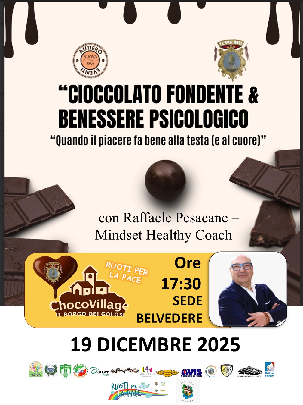 Descrizione title Un incontro che unisce gusto e benessere per scoprire come il cioccolato fondente possa influenzare positivamente mente ed emozioni. Con Raffaele Pesacane, Mindset Healthy Coach, un viaggio tra piacere consapevole, equilibrio psicologico e dolcezza che nutre anche il cuore.